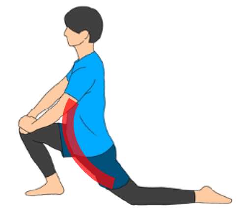 片膝を立てた状態で他方の足は後ろに伸ばし、体幹は真っすぐにします。姿勢を真っすぐにしたまま、片膝を立てた足の方に重心を乗せていくと、後ろに伸ばしている側の腸腰筋を伸ばすことが出来ます。